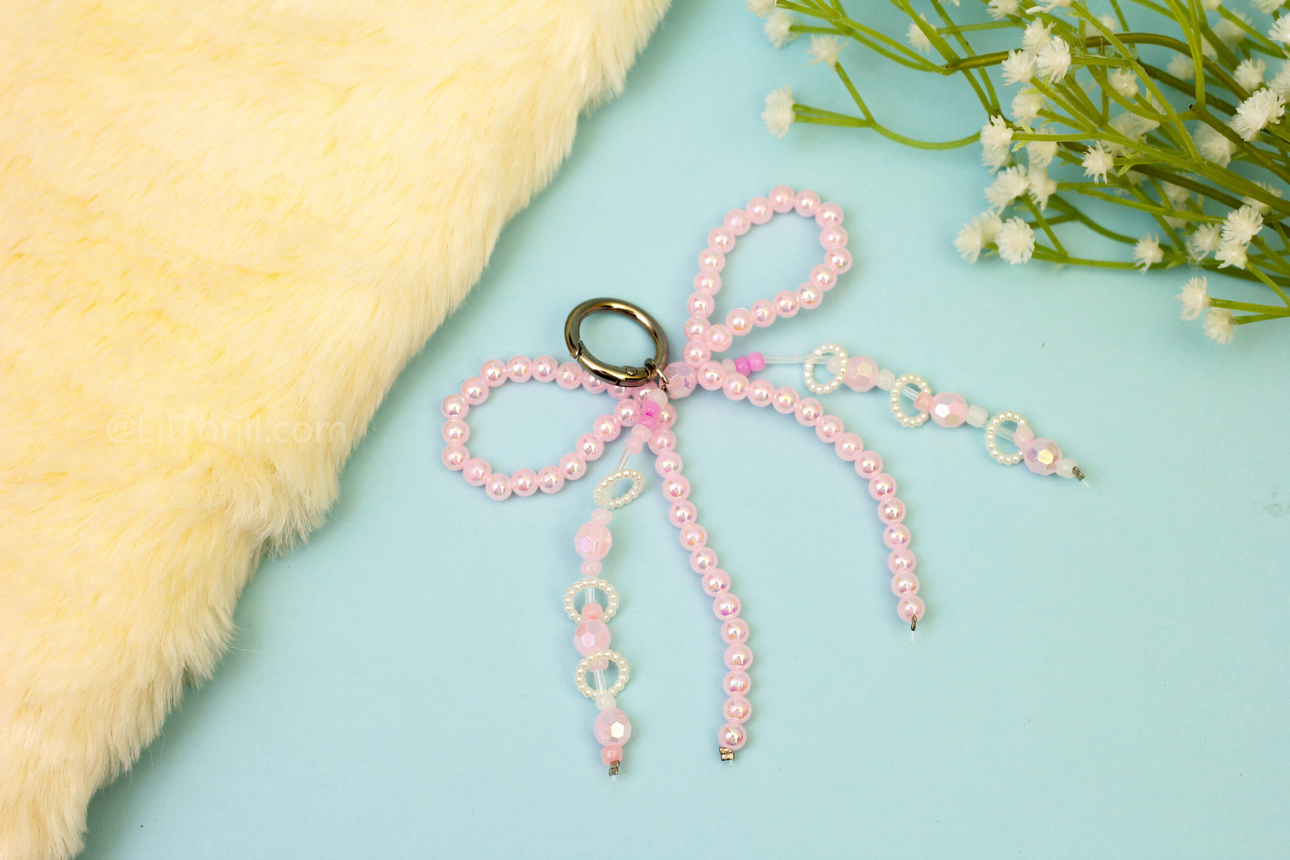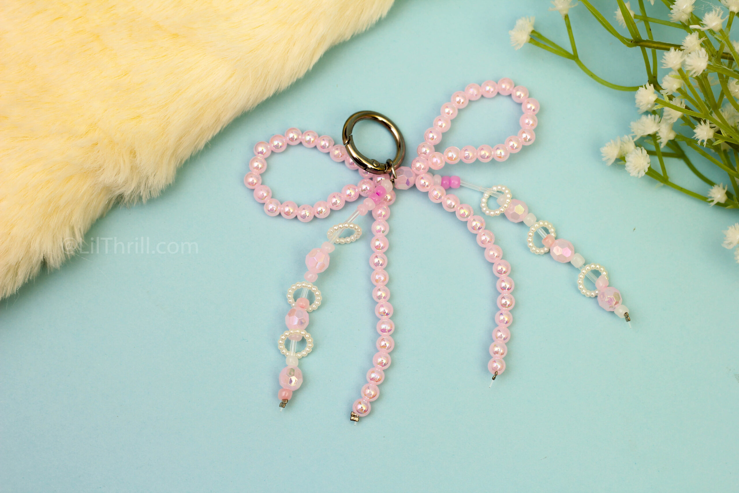 Pink Bow With Circuler pearl Bag Charm